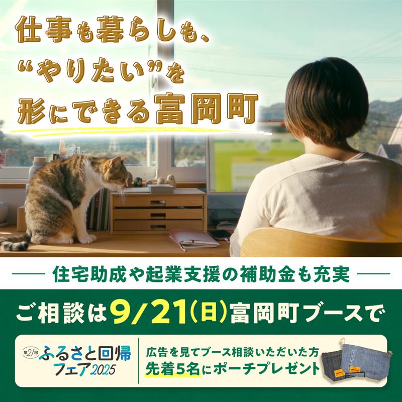 9月21日(日)、東京で開催される移住イベント「ふるさと回帰フェア2025」に、福島県・富岡町も参加します!
