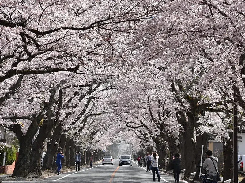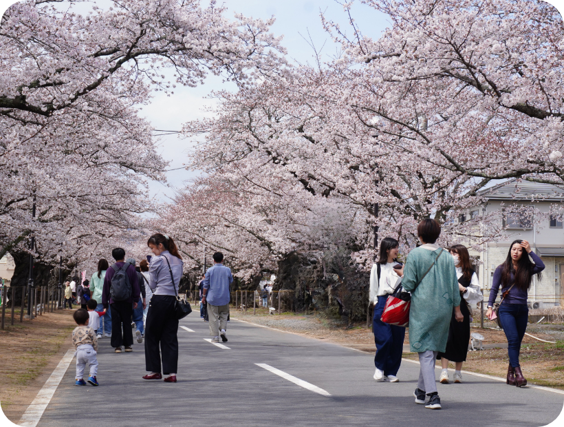 明治33年、夜の森が開拓された際に植えられた桜が町のシンボルに。今では約2.2kmにわたる見事な桜並木となり、毎年春には桜のトンネルを見ようと、町内外から多くの方で賑わいます。
