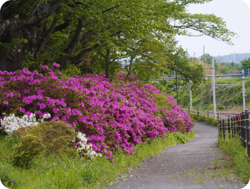 JR常磐線夜ノ森駅のホームを彩っていたツツジは除染のため、やむなく伐採されてしまいましたが、震災以前の景色を取り戻すための取り組みを行っています。