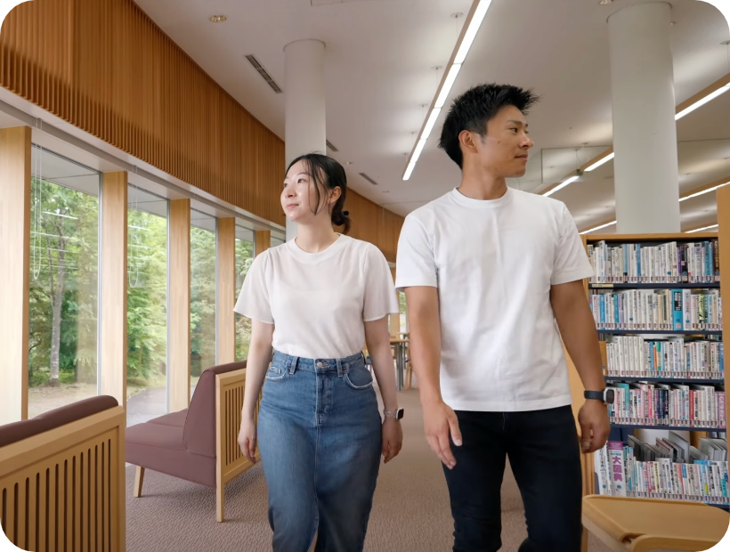 知的な好奇心を満たしたくなったら、複合文化交流施設「学びの森」内にある、開放的で素敵な富岡町図書館へ。思い思いの時間を過ごせます。