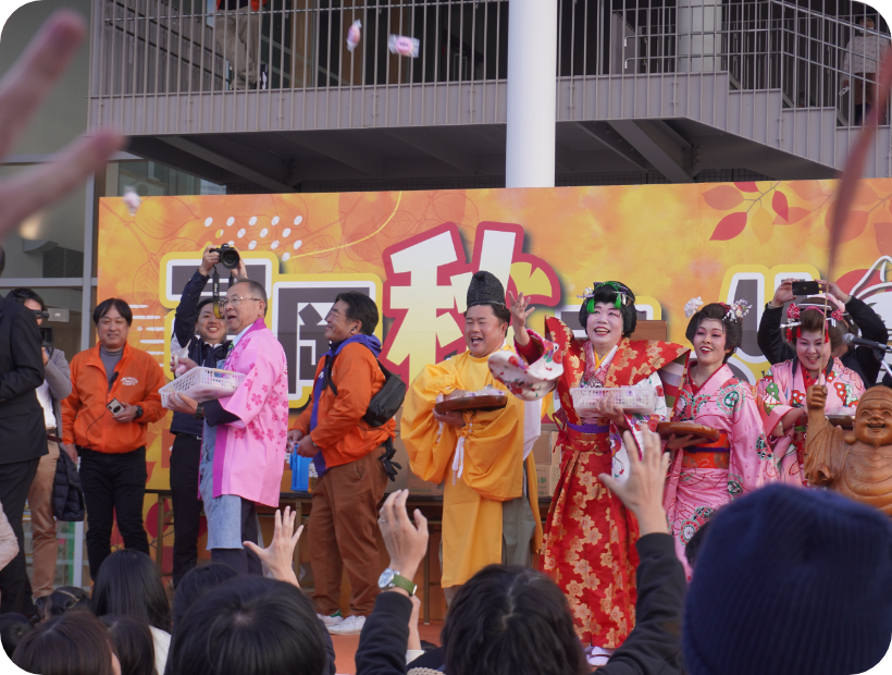 大正時代から続く、五穀豊穣・商売繁盛を願う祭りです。震災による中断を乗り越え、2017年に復活。近年は「学びの森」周辺を会場に、他のイベントと合同で開催され、多くの人々で賑わいます。