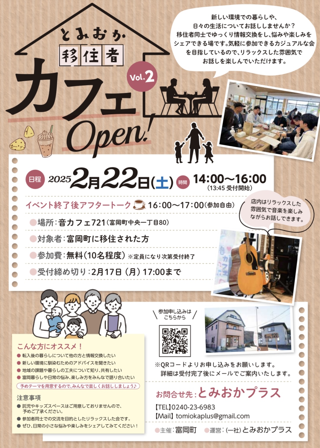 2025年2月22日(土)、富岡町に移住された方々を対象に、「移住者カフェvol.2」を開催しました!
