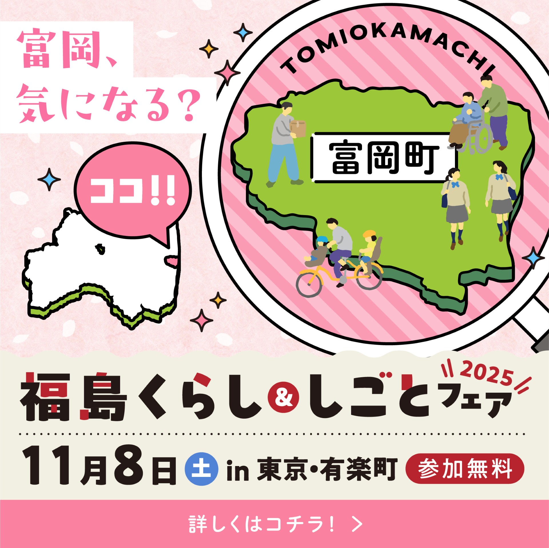 今回のイベントでは、暮らしのこと、仕事のこと、地域のこと、なんでも直接お話しできます。少しでも興味のある方は、ぜひお気軽に富岡町ブースに遊びに来てください!