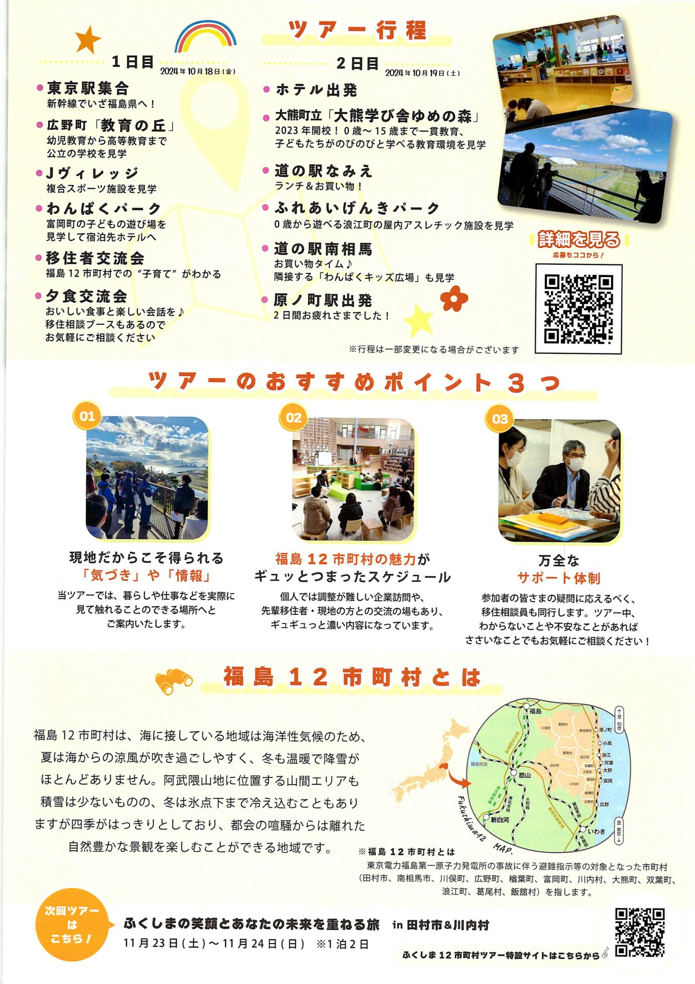 主催/企画/運営 | 主催:(公財)福島イノベーション・コースト機構 ふくしま12市町村移住支援センター 募集企画:ディップ(株) 旅行実施:(株)JTB |