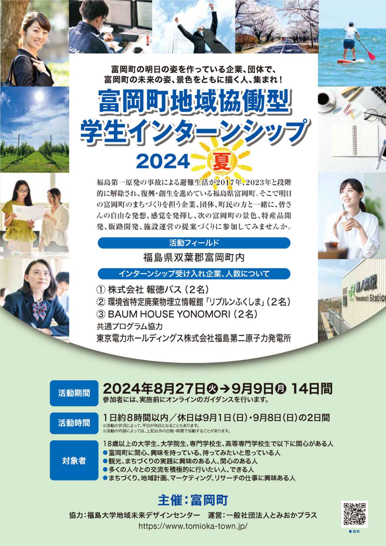 「富岡町地域協働型学生インターンシップ活動 2024夏」インターン生を募集!