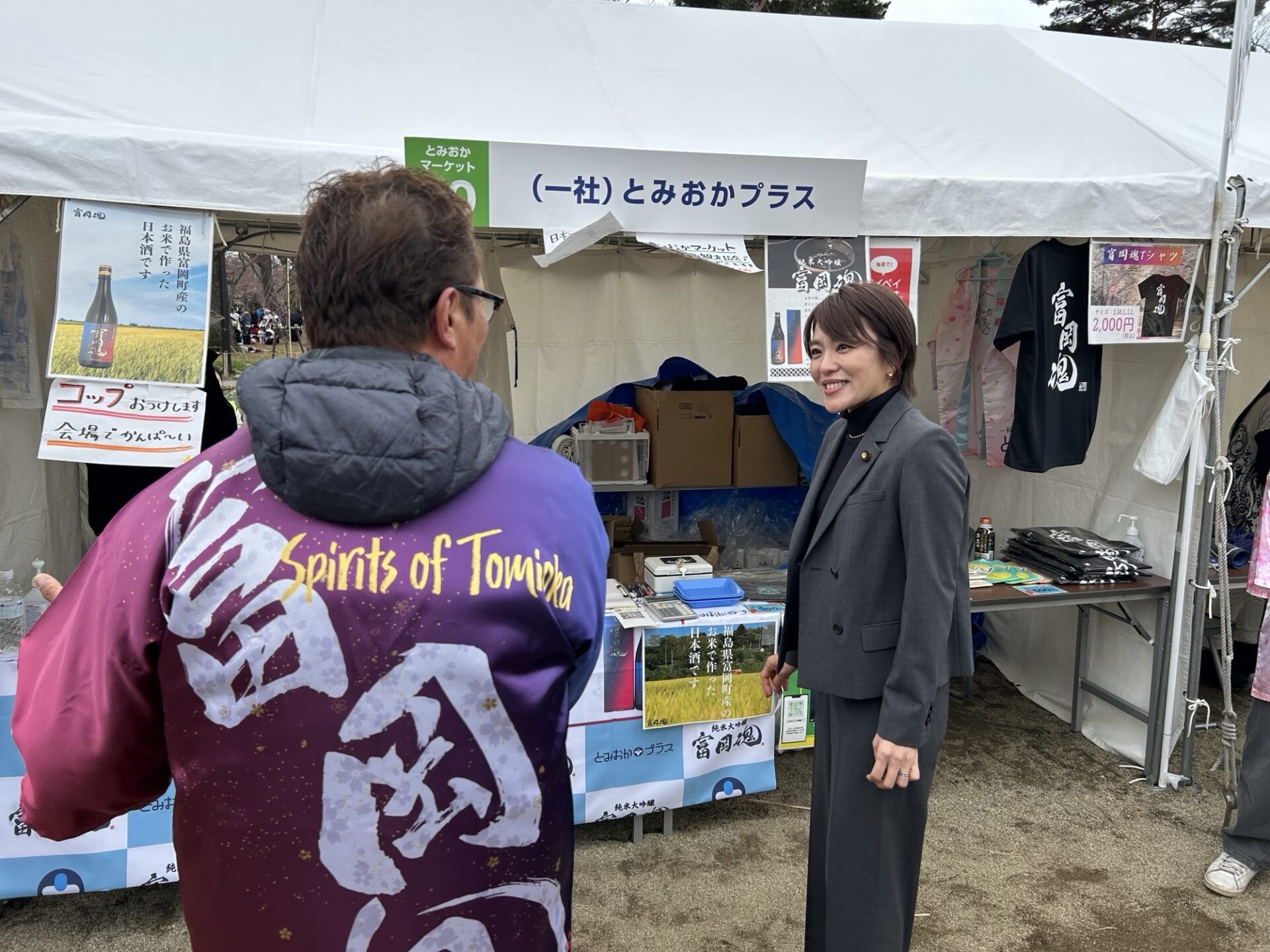 4月6日(日)の夜の森桜まつり2025にて、今井絵理子復興大臣政務官に富岡町の移住・定住の現状をご説明いたしました。