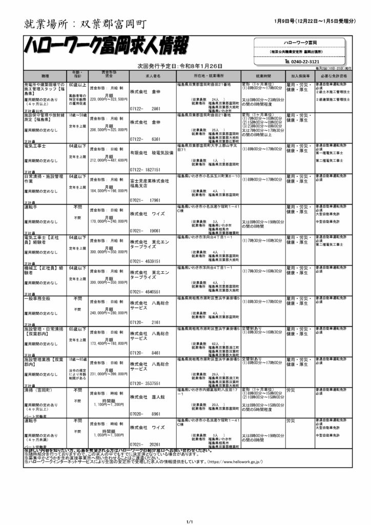富岡町大字小浜字大膳町109-1 TEL 0240-22-3121 (代表) 営業時間:8時30分から17時15分 休館日:土、日、休祝日、年末年始