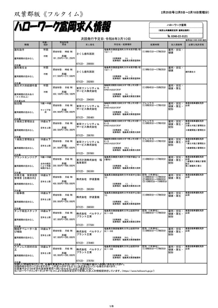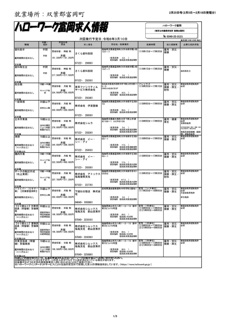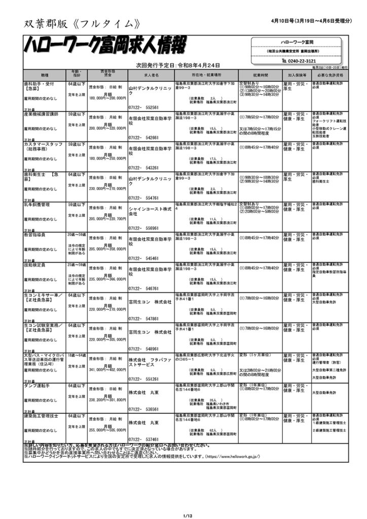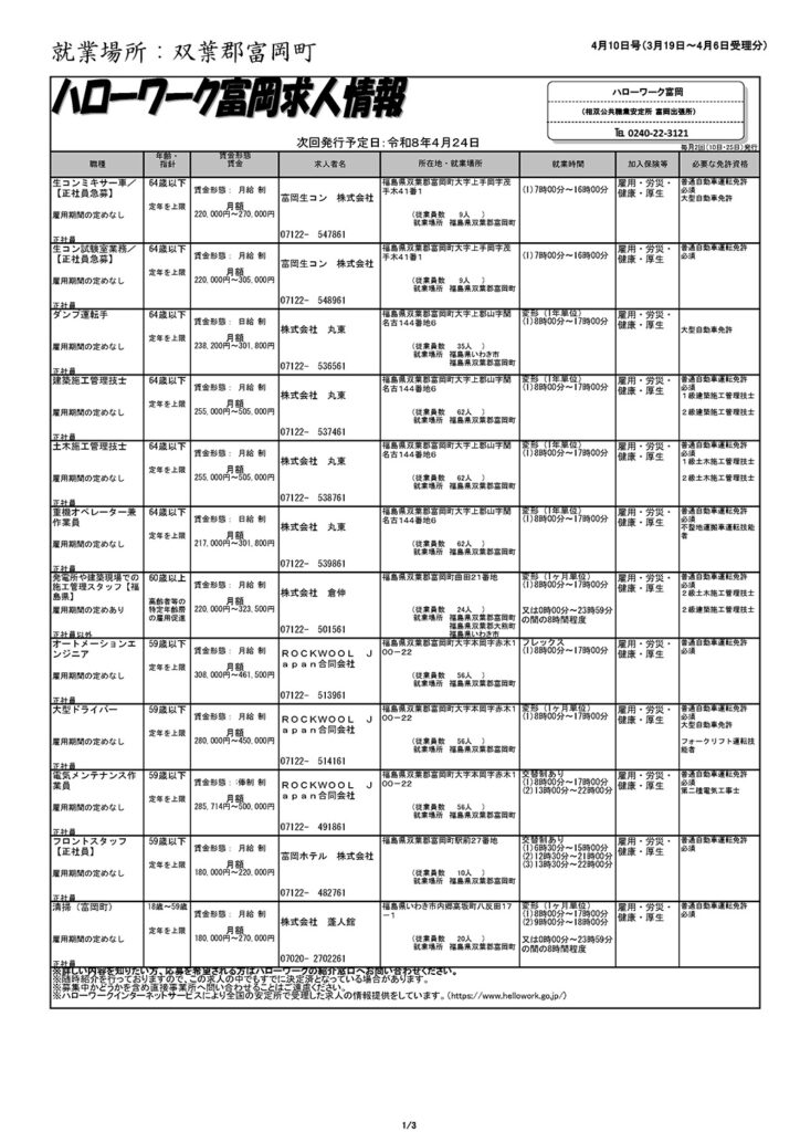ハローワーク富岡求人情報