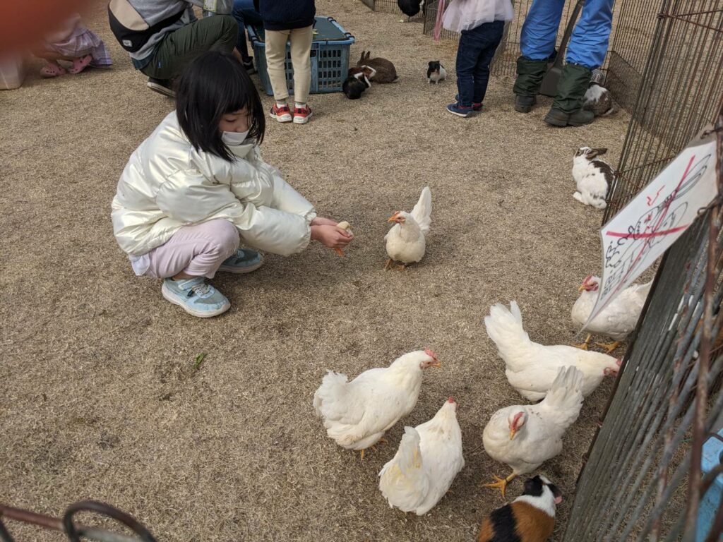 子供達は動物たちに野菜をあげたり、抱っこしたり、たくさんの動物たちと楽しいふれあいの時間を過ごしていました。