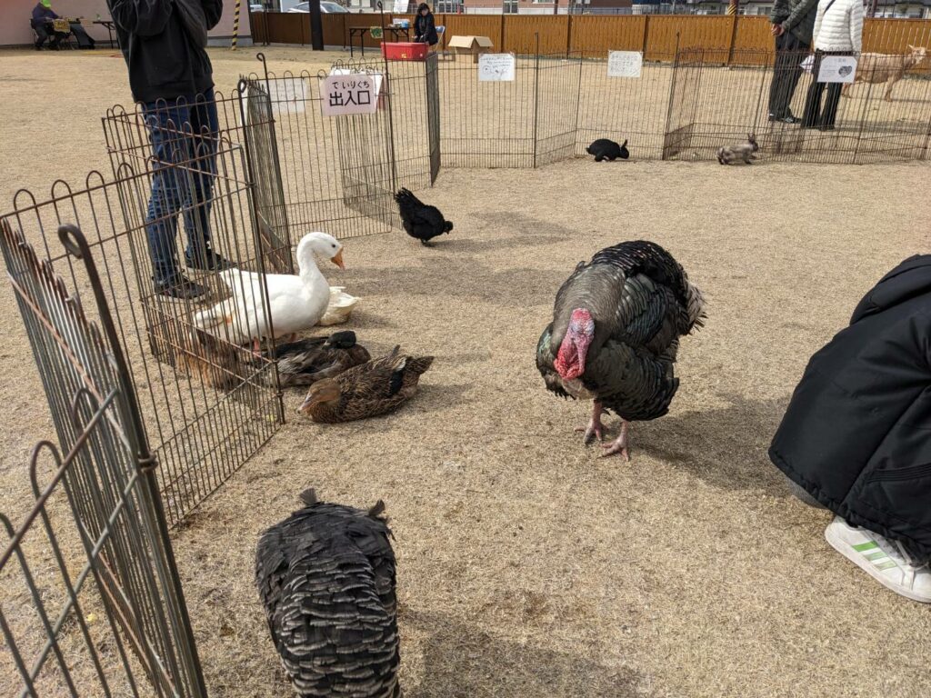 3月20日には「わんぱく春まつり」があり、芝生エリアに移動動物園が来ていて、
