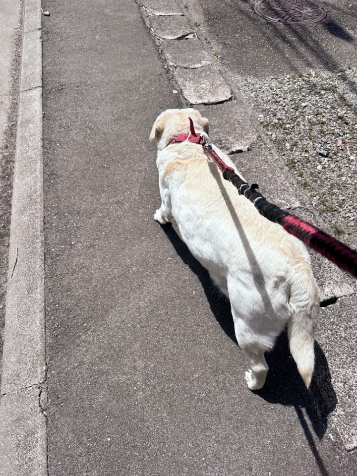 ご存知の通り、ラブラドール・レトリバーは豊富な運動量と旺盛な食欲を併せ持つ犬種です。運動不足はあっという間にお腹がぽよんとしてしまう原因にもなるので、毎日の散歩は欠かせません。子犬の頃から一緒に過ごしていますが、本当に大きく立派になったなあと、成長を日々感じています。