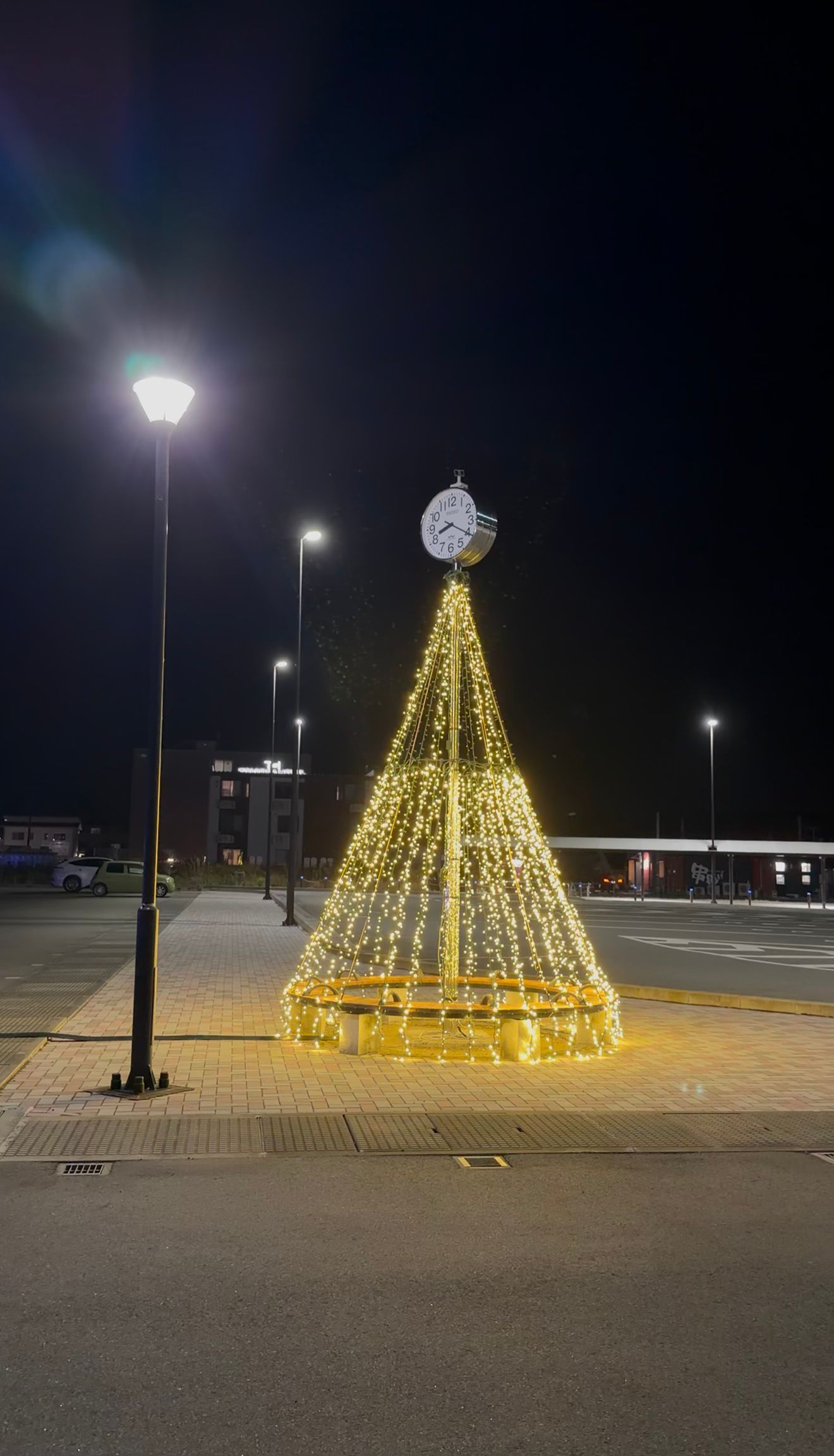 この場所はまさに、知る人ぞ知る特等席。少し高い位置から見下ろすと、駅前の煌めきが一望でき、まるで宝石箱をひっくり返したような光景が目の前に広がります。イルミネーションが織りなす光の絨毯は、息をのむ美しさです。