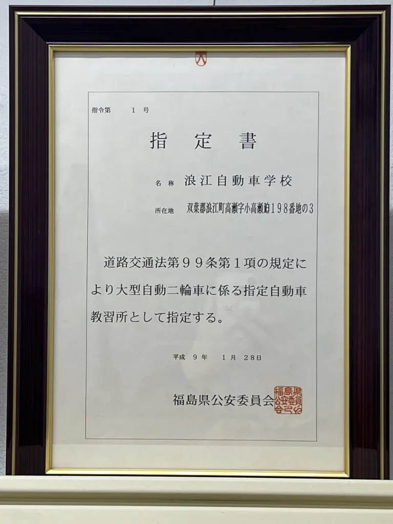 平成8年の道交法の一部改正で、大型自動二輪車の教習が「指定自動車教習所」で行えるようになったんですが、その指定を受けたのは、私たちの教習所が福島県で初めてだったんですよ。平成9年の1月のことです。その指定を受ける基準というのがとても厳しくて、それをクリアするために社員一丸になって努力したことを憶えています。