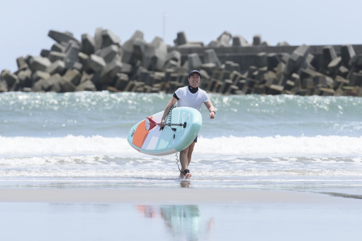 海の上に立つ爽快感と開放感はSUPじゃないと味わえないです。あとサーフィンは良くも悪くも波のコンディションに左右されると思いますが、その点SUPはどんなコンディションでも楽しめるのが魅力ですね。穏やかな海ではクルージングができますし、逆に荒れているときは波乗りができます。遊び方が多様ですね。道具もそれほど必要なく、始めるハードルが低いのもいい所だと思います。