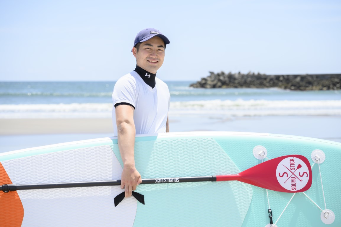 最初はサーフィンにしようかと考えていたのですが、いろいろ調べているときに「SUP(Stand Up Paddleboard)」を見つけたんです。サーフィンよりも手軽に始められそうだなと思って、道具を揃えていざやってみたら・・・もう運命の出会いでしたね(笑)。
